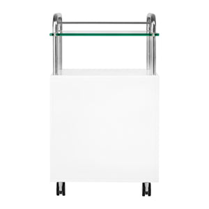 Visokokvalitetni pomoćnik za pedikuru je funkcionalni kozmetički komad namještaja na kotačima. Zahvaljujući svojoj mobilnosti, možete ga prevesti u druge sobe za tretmane. Pomoćnik ima staklenu radnu ploču, tri ladice za alate, pribor i policu za glodalicu za pedikuru ili drugi uređaj.