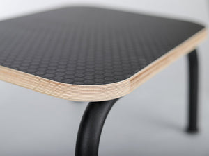 Stolica za stepenice izrađena je od čvrstog metalnog okvira, obloženog crnom, mat praškastom bojom, i izdržljive drvene šperploče s površinom protiv klizanja. Gumene noge na nogama štite pod i sprječavaju klizanje stepenice. Metalna stolica za stepenice bitan je dio opreme za fizioterapijsku ili masažnu praksu. Olakšava siguran ulazak i izlazak iz stola za tretmane.