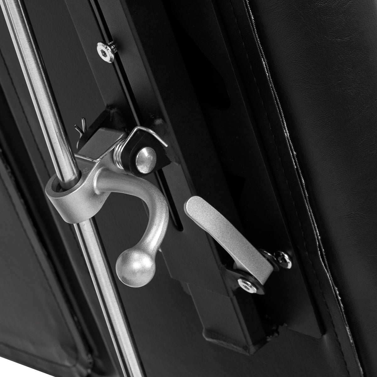 Jednostavan, minimalistički izgled i klasične boje čine stolicu savršenom za svaki salon za tetoviranje, značajno poboljšavajući udobno obavljanje usluga. Funkcionalna stolica olakšava zauzimanje udobnog položaja kako za tetoviranu osobu, tako i za umjetnika. Podstava od pjene otporne na deformacije, presvlaka od sintetičke kože ugodne na dodir u nijansama crne i stabilan metalni okvir osiguravaju trajnost i lako čišćenje opreme. Estetski, jednostavni šavovi daju joj jedinstveni karakter. Kotači smješteni u jednom dijelu baze čine premještanje namještaja mnogo lakšim.
