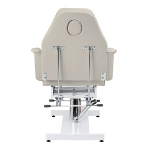 Visina sjedala može se podesiti u rasponu od 62-75 cm bez upotrebe ruku pomoću hidraulične pumpe. To omogućuje udobno korištenje opreme osobama različite visine i omogućuje prilagodbu individualnim potrebama kako klijenta tako i osobe koja izvodi tretman. Korišteni mehanizam je vrlo izdržljiv i pouzdan. Zahvaljujući otvoru u naslonu za glavu skrivenom ispod pravilno profiliranog jastuka, stolica će također biti savršena za tretmane koji se izvode na leđima, poput masaža ili tetoviranja.