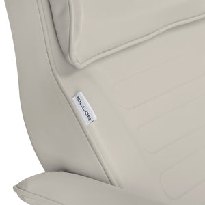 Stolica je ispunjena pjenom odgovarajuće čvrstoće i presvučena polu-mat imitacijom kože u nijansama bež boje. Zahvaljujući korištenju takvog materijala, oprema je udobna za korištenje, otporna na vlagu i laka za čišćenje. Pravilno profilirani rubovi daju sjedalu ergonomski oblik. Čvrsta konstrukcija jamči trajnost i stabilnost. Jednostavan dizajn i klasične boje omogućuju joj da se uklopi u svaki interijer.