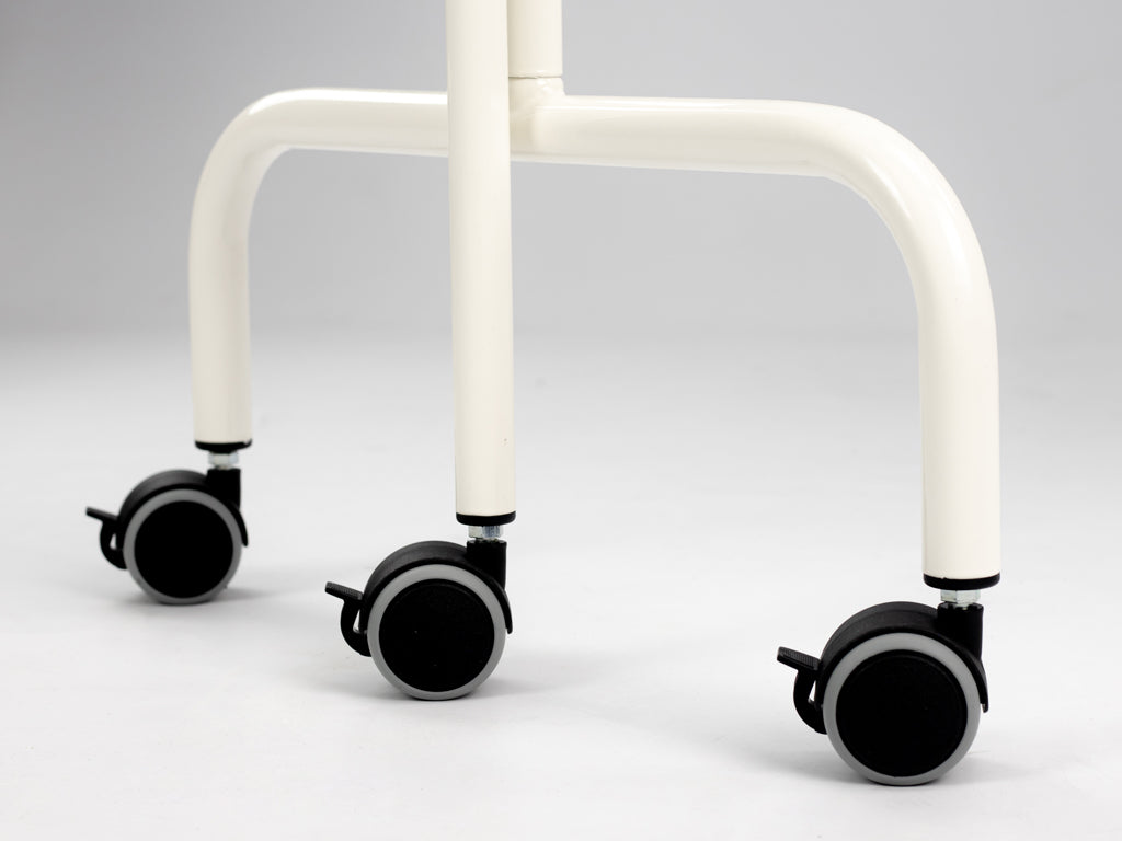 Zaslon izrađen od čelika presvučenog izdržljivim bijelim praškastim lakom. Posebni kotači s kočnicama omogućuju jednostavno kretanje i stabilizaciju, čak i na skliskim površinama. Atraktivne boje zaslona znače da, osim funkcionalnosti, zasloni naglašavaju moderan karakter interijera. Bijela boja konstrukcije zaslona savršeno se podudara s Evero kolekcijom stacionarnih stolova za masažu.