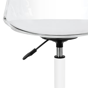 The model catches the eye with its striking, transparent backrest, giving the whole a light and modern character. The combination of the transparent structure with the seat cushion upholstered in white synthetic leather and the white base creates a sophisticated contrast that emphasises elegance. This makes the chair not only a functional piece of furniture, but also a stylish decoration for the office. It blends in perfectly with any interior, fitting in perfectly with the aesthetics of contemporary beauty salons.