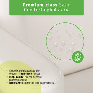 The Elara PRO 6P is a PREMIUM-class cosmetic treatment chair designed for professionals who demand elegant design, precise adjustment, and maximum working comfort. Its modern construction combines functionality, aesthetics, and solutions that simplify daily work in the treatment room.