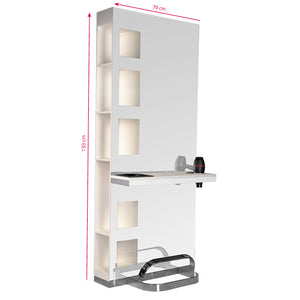 a modern hairdressing console with a large mirror and handy shelves on both sides. the contents of the shelves on one side are visible through the top-class finish "windows". an elegant and at the same time universal element of the interior that will emphasize the character of any living room.