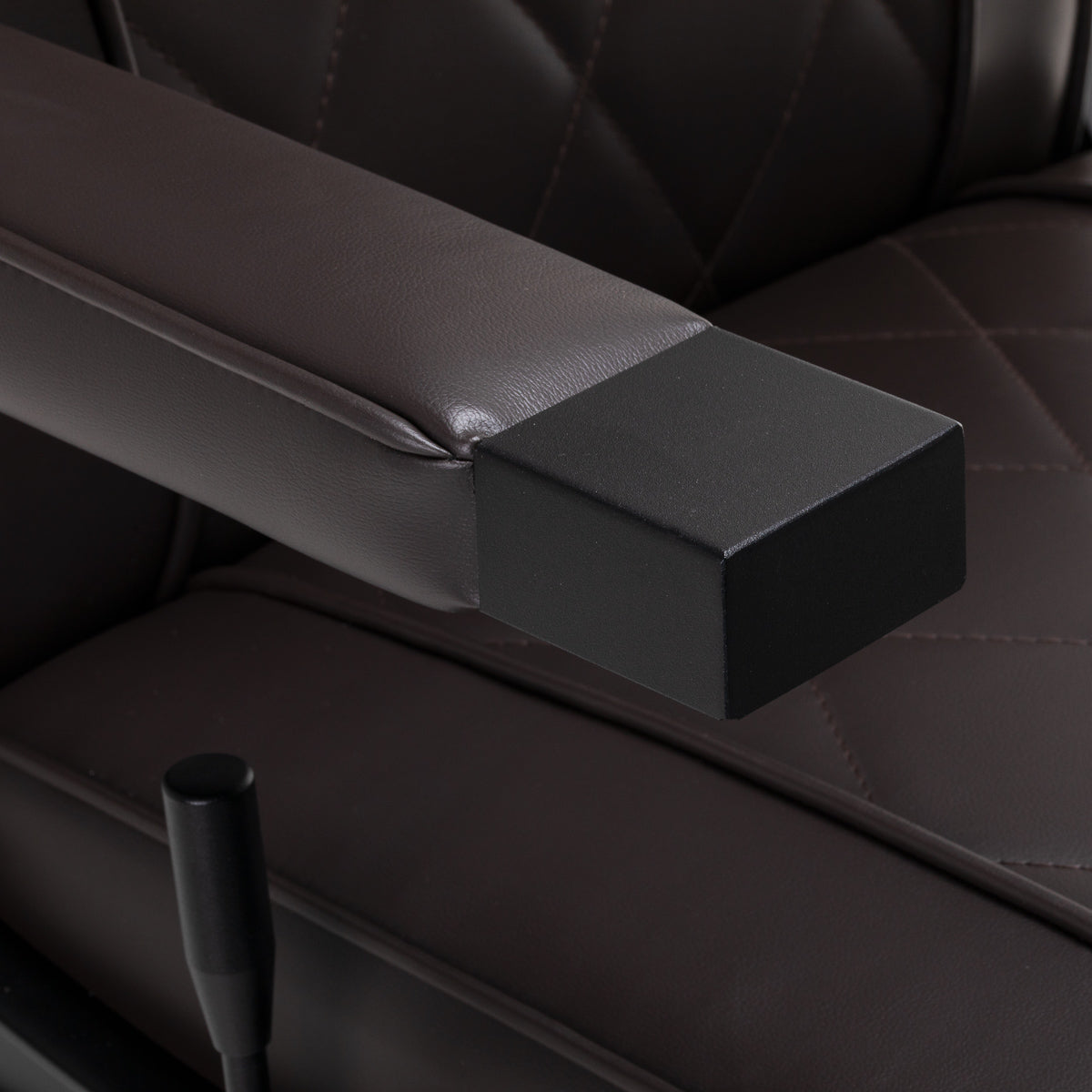 The chair's solid round base construction ensures stability and excellent user comfort. The seat filling, made of deformation-resistant foam, and the upholstery crafted from soft-touch synthetic leather with a matte finish ensure long-lasting durability and comfort during prolonged use. Stylish stitching on the upholstery adds character, evoking automotive design inspirations that enhance its elegant appearance. This feature also makes the chair moisture-resistant, durable, and easy to clean. The upholstery in brown tones gives the chair a unique character, and its minimalist style allows it to blend seamlessly with the decor of any barbershop.