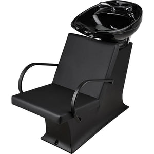 The LADY PIK Backwash is designed for those who love raw simplicity. The black powder-coated steel and clean lines make it a perfect fit for industrial-style interiors. Its compact dimensions make it ideal for smaller salons. Black upholstery