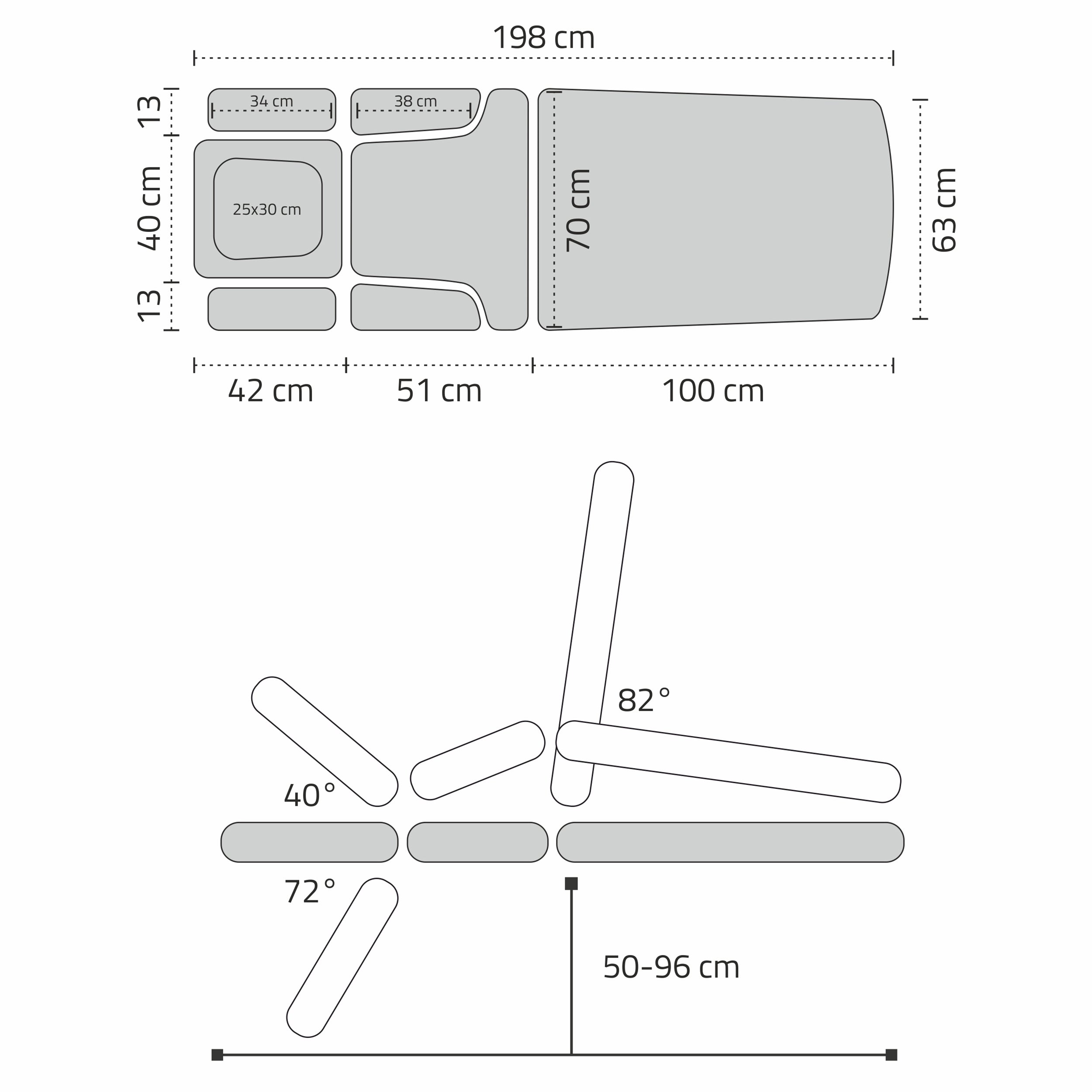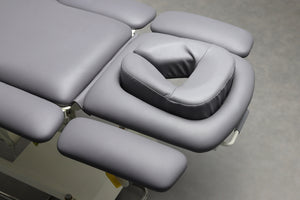 Headrest with face cutout, Ergo cushion and two adjustable armrests